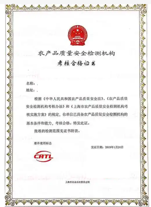 证书名称 中国标准质量安全证书02